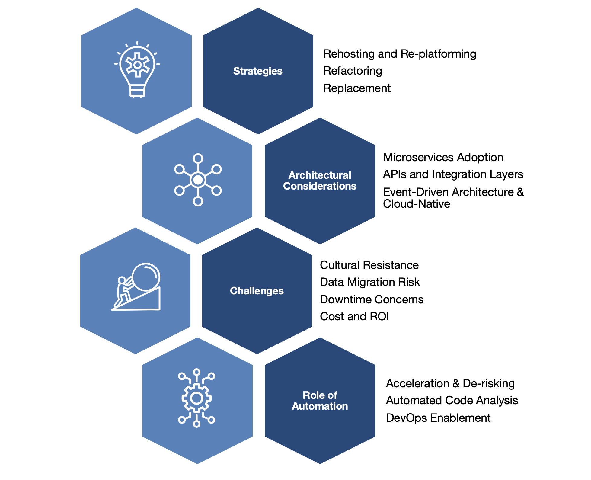 Modernizing legacy systems involves a rethink of architectural paradigms to provide modern scalability, resilience, and compatibility with emerging technologies. Equally important is the mitigation of risk that may be enabled by iterative modernization. Key architectural considerations include: