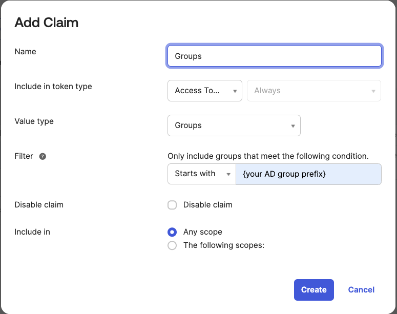 4. Navigate to the Claims section to include groups within the claim. This step is crucial as it ensures that groups are included in the JWT token. Click on "Add Claim". Considering that a user may be associated with numerous groups in AD, and the application may only require a specific subset of these groups, we can utilize the "Matches regex" option to filter AD groups accordingly.